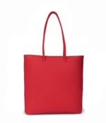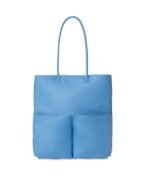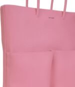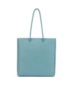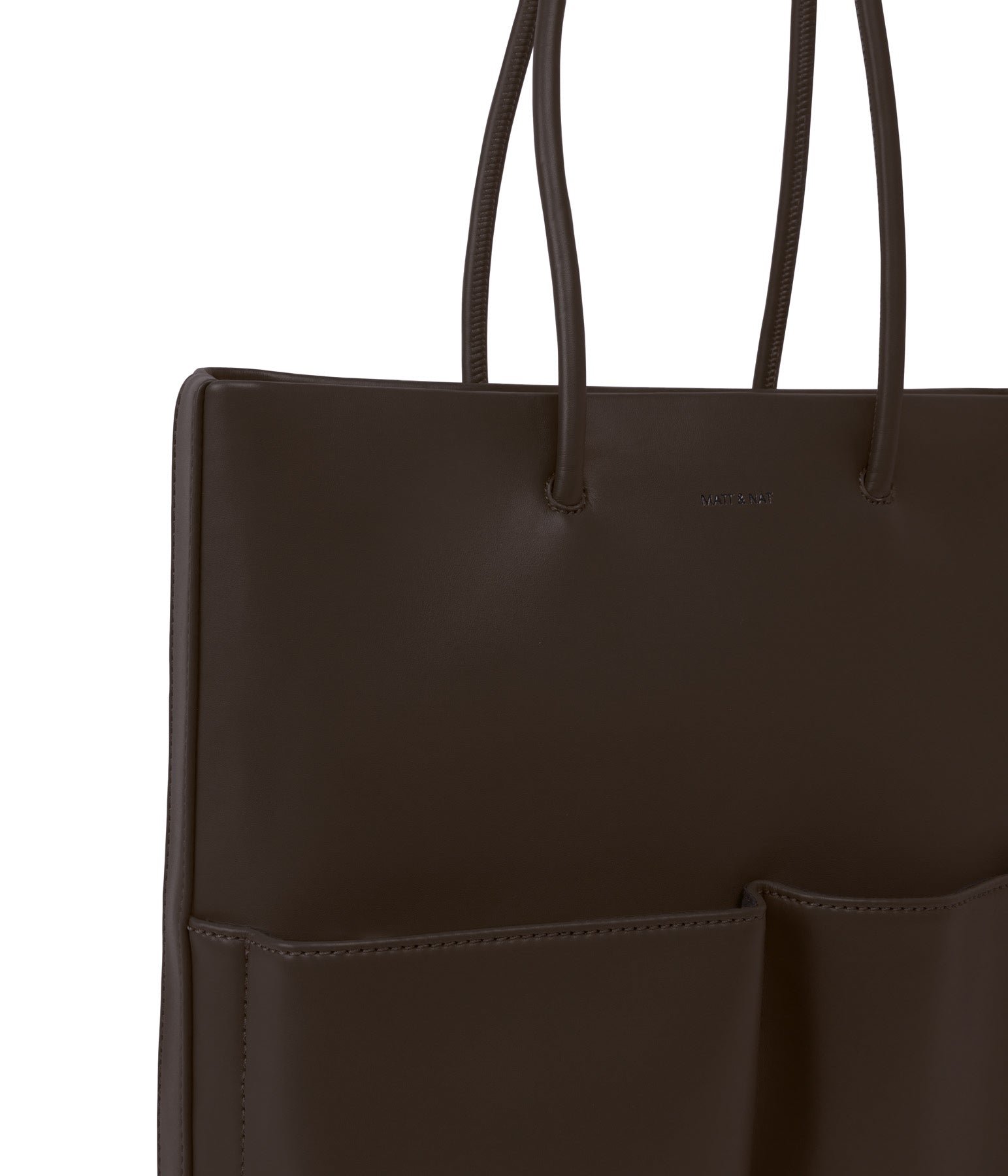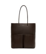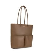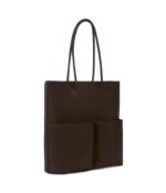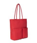 Tote with skinny tubular handles. main compartment with zip closure. 1 front pocket with zip closure and 1 front pocket with magnetic snap closure.