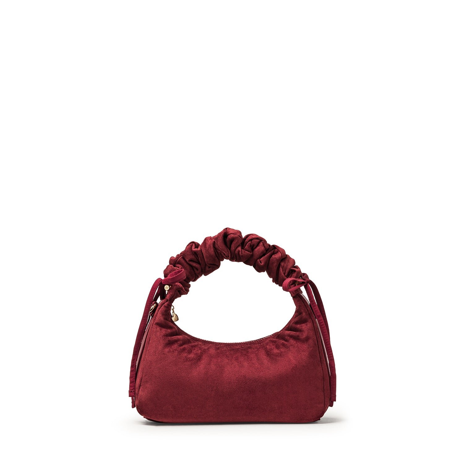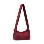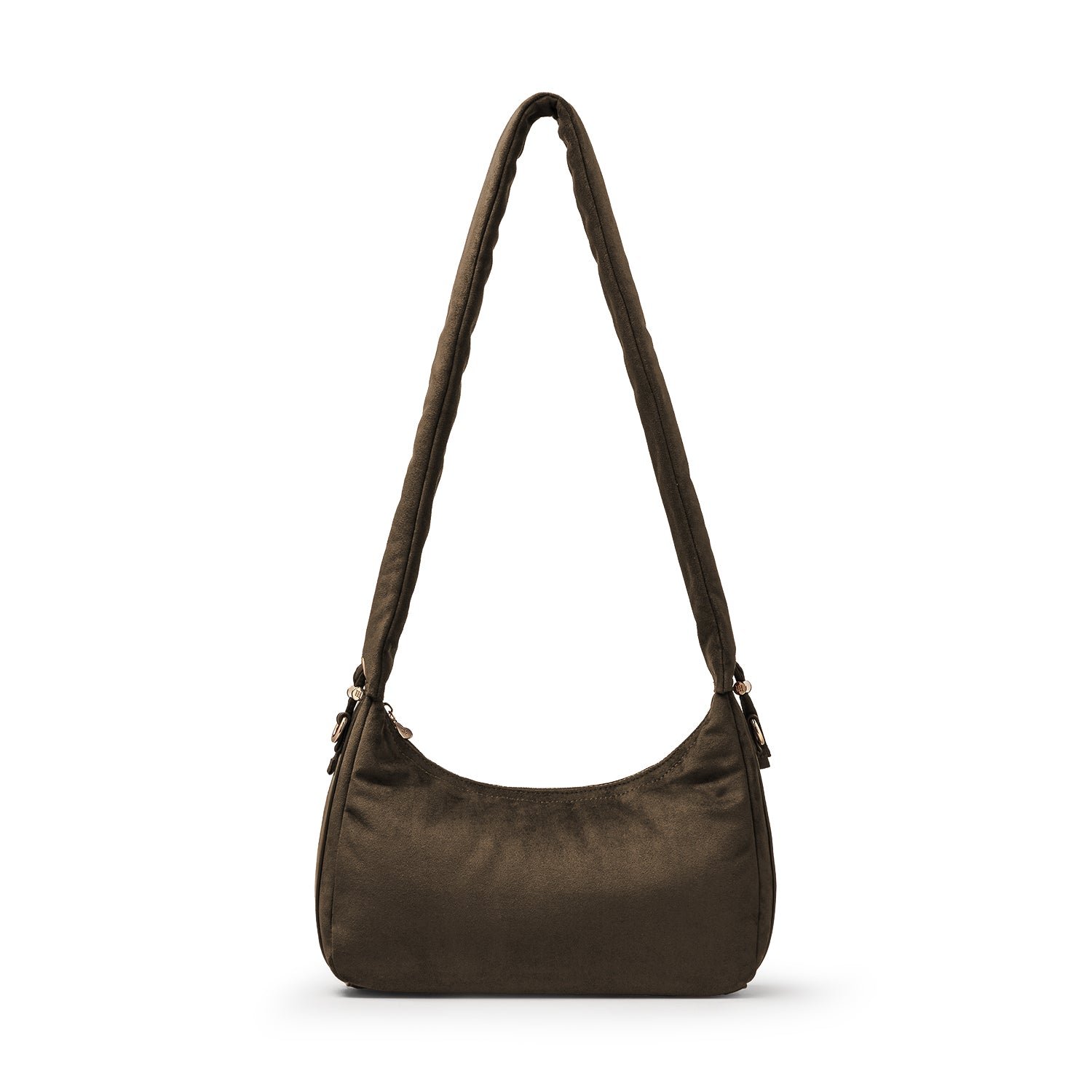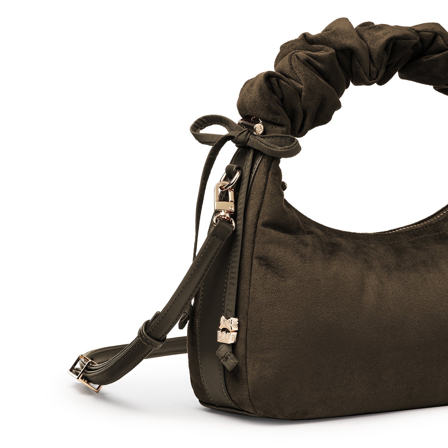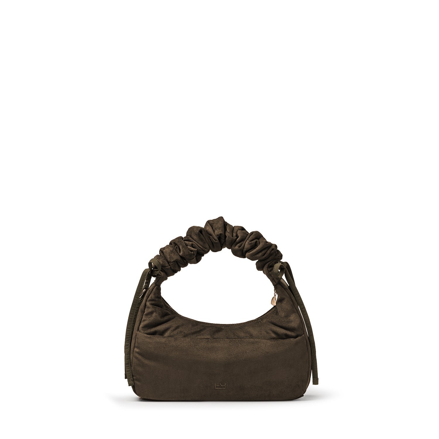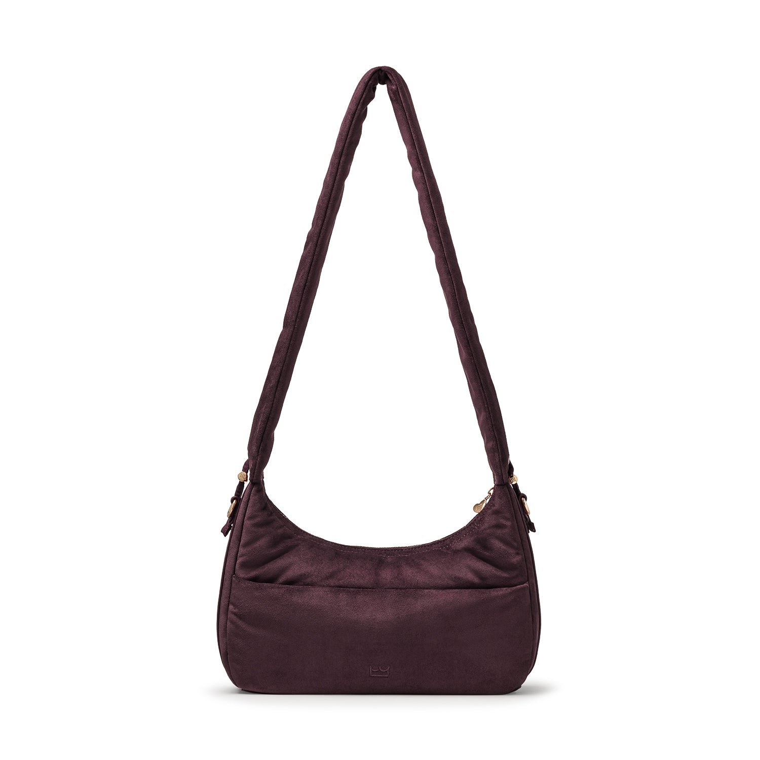 Carry it three ways: grab it by the scrunchie handle. sling it over your shoulder. or wear it crossbody with the long strap. The padded body has a soft. velvety texture. giving the bag a refined and understated look.
