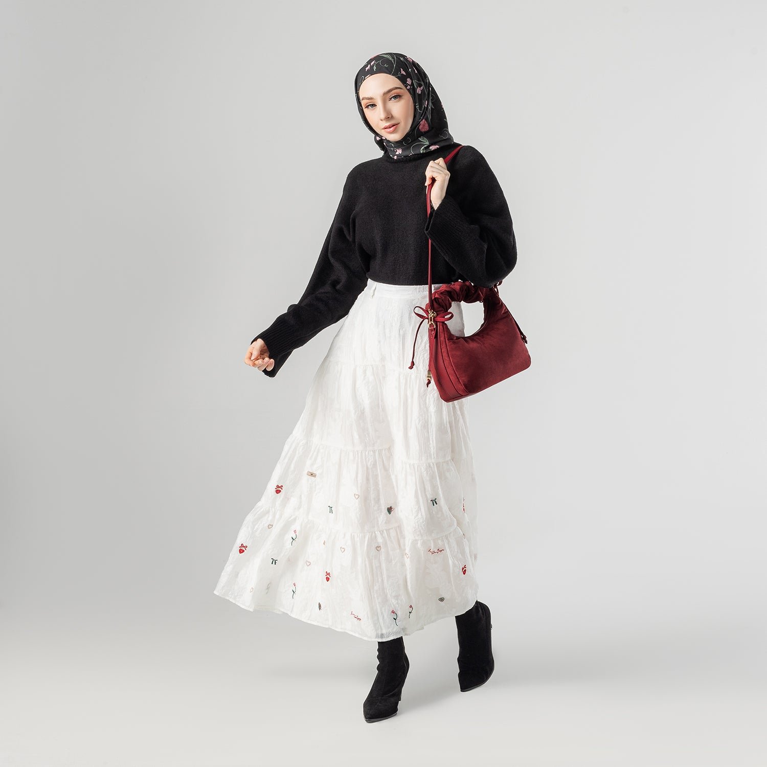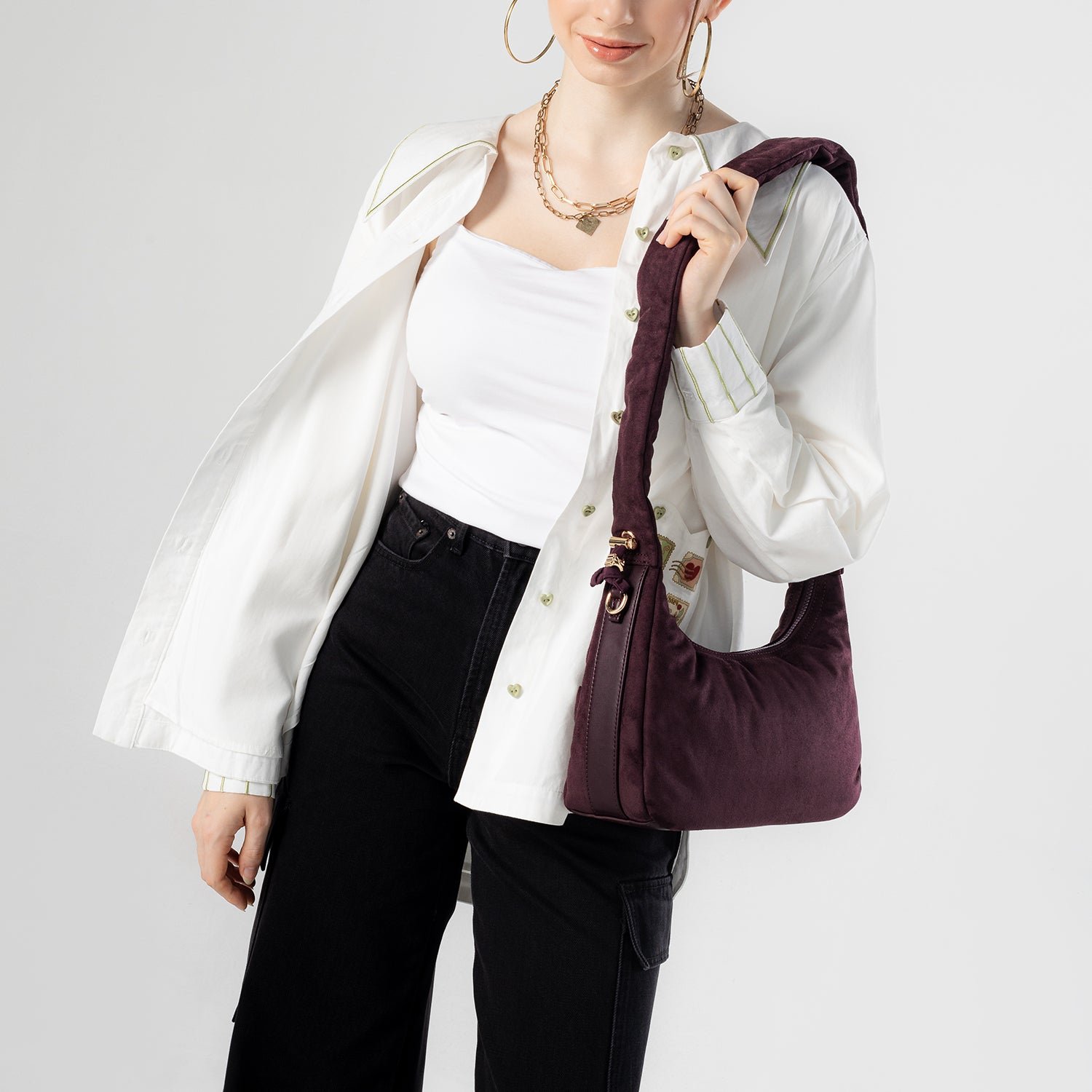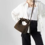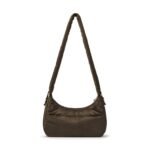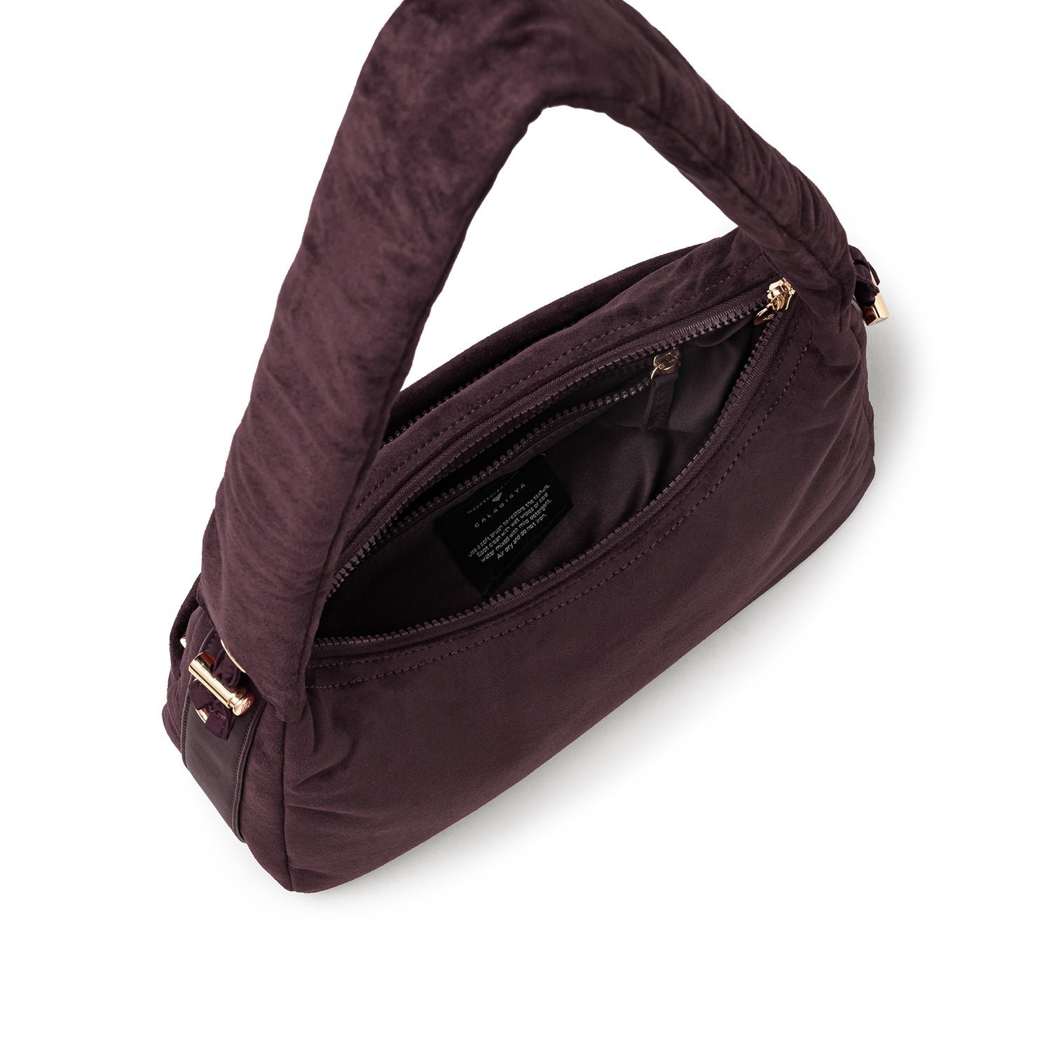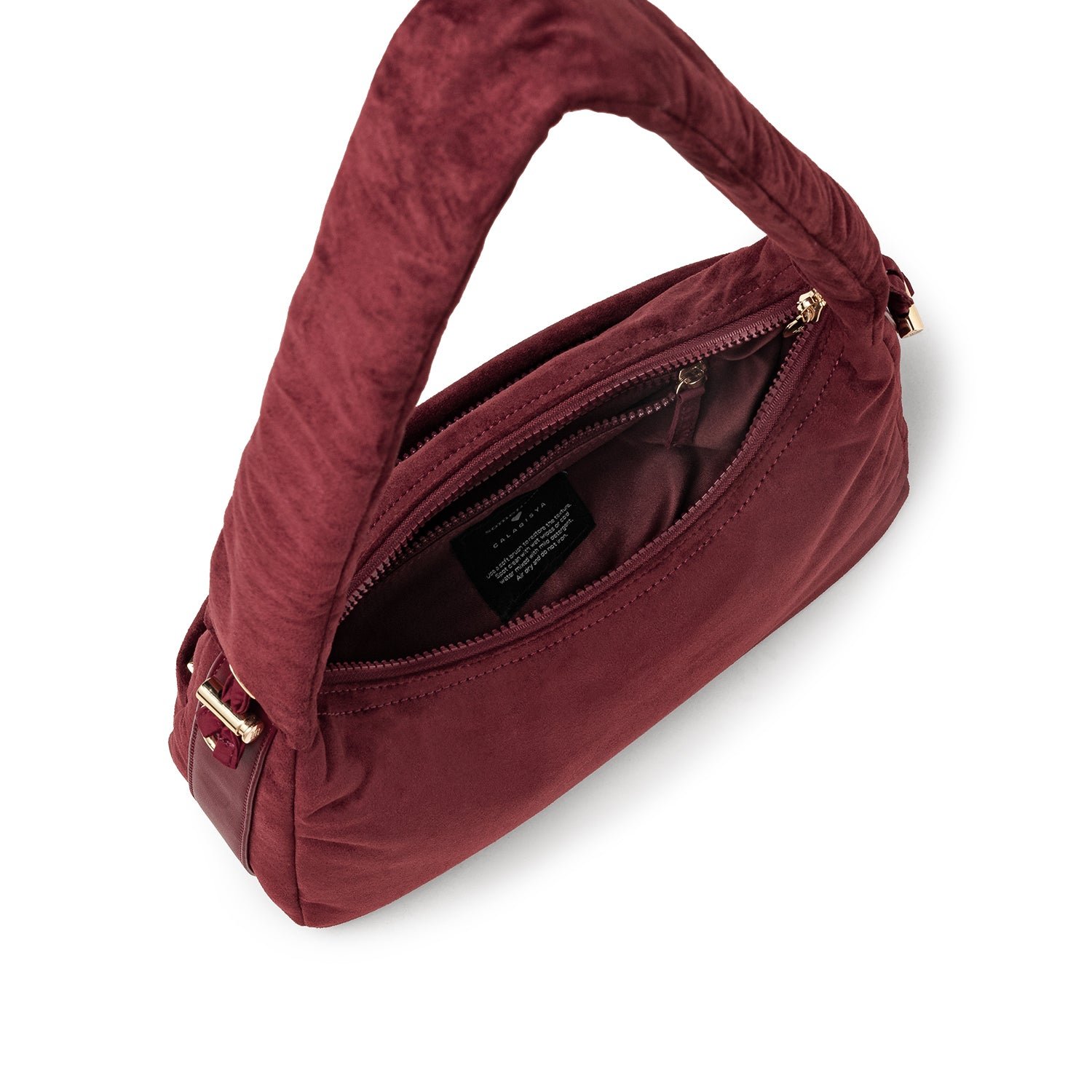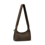 Carry it three ways: grab it by the scrunchie handle. sling it over your shoulder. or wear it crossbody with the long strap. The padded body has a soft. velvety texture. giving the bag a refined and understated look.