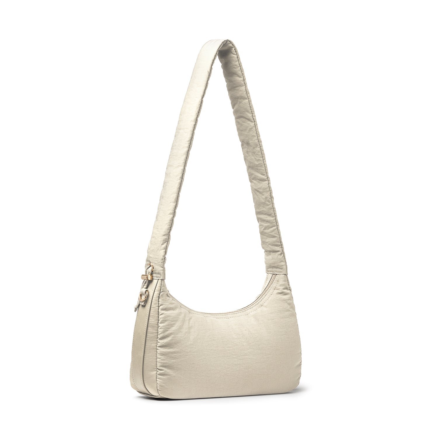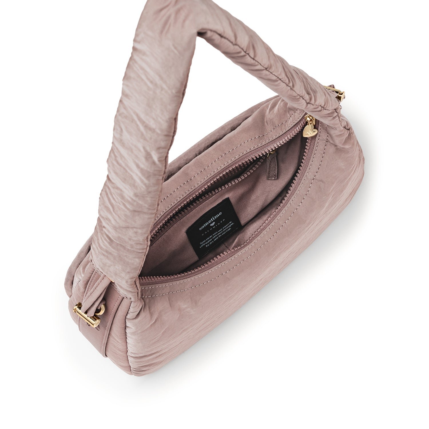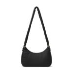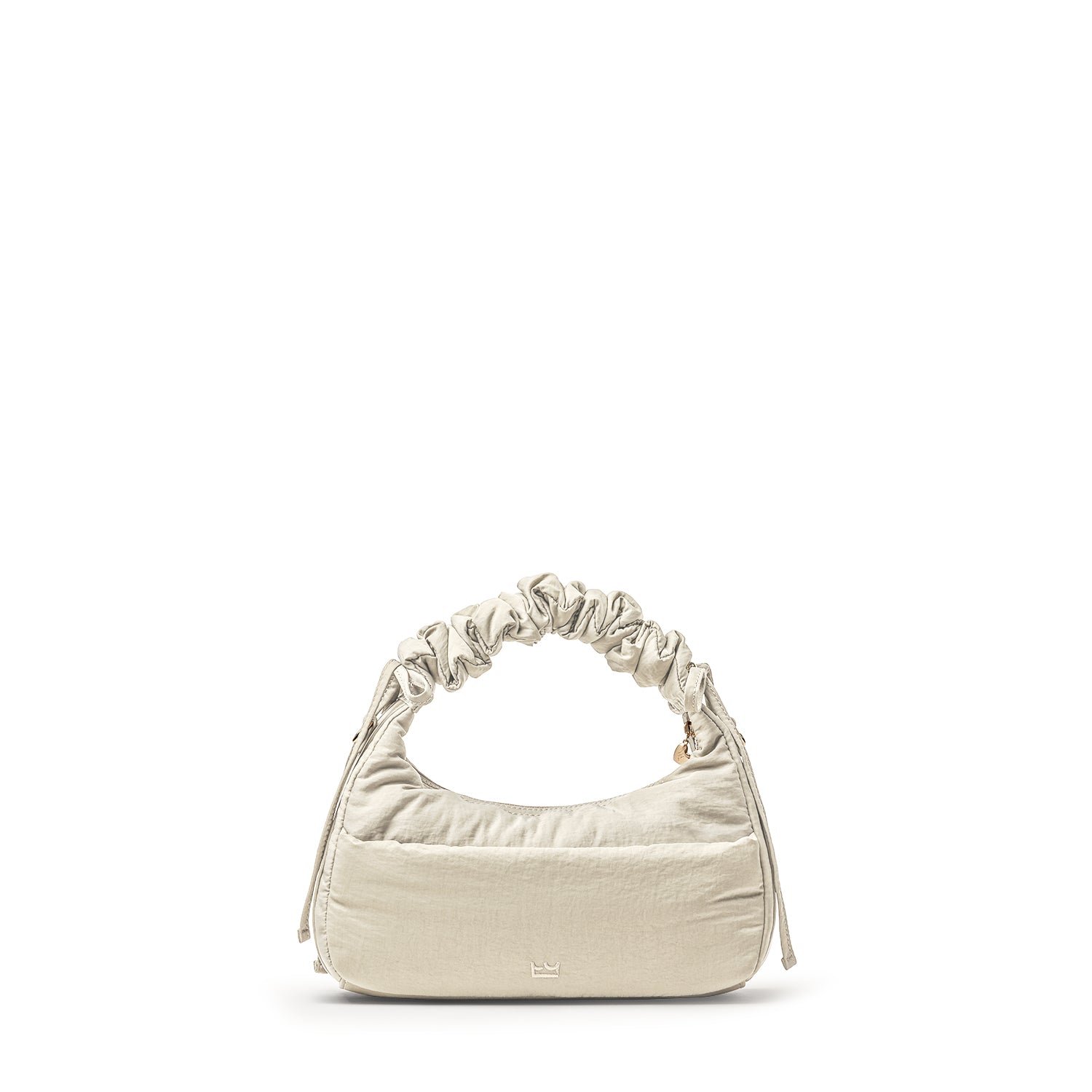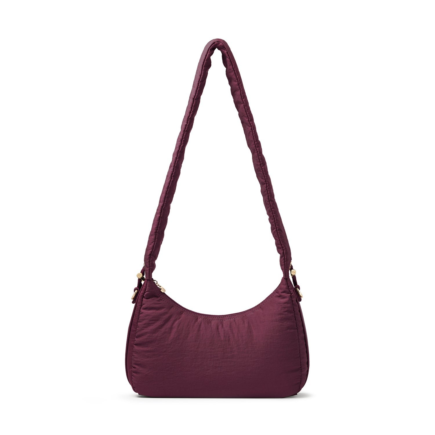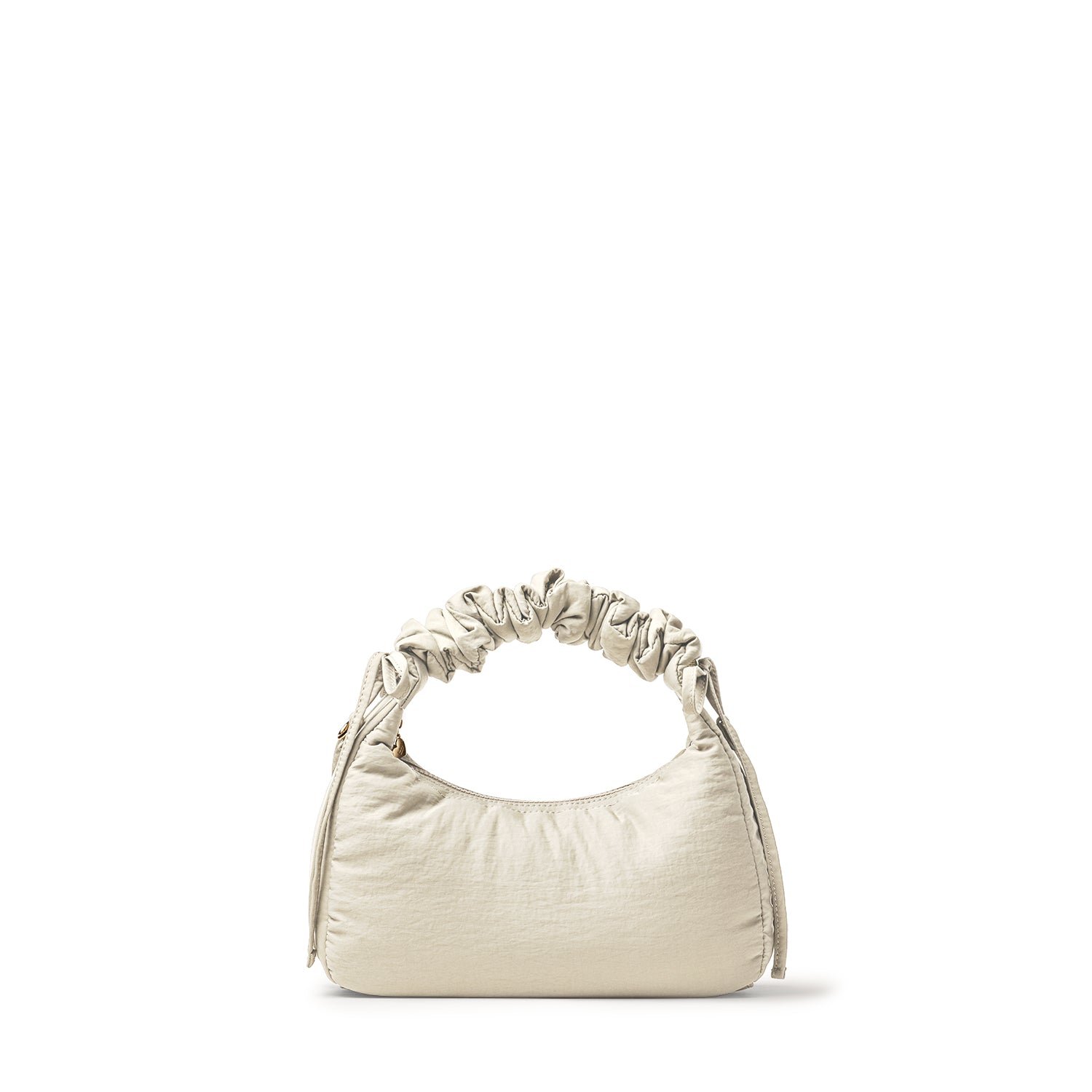 Carry it three ways: grab it by the scrunchie handle. sling it over your shoulder. or wear it crossbody with the long strap. The padded matte nylon body is water- and stain-resistant. ready to handle unexpected spills.