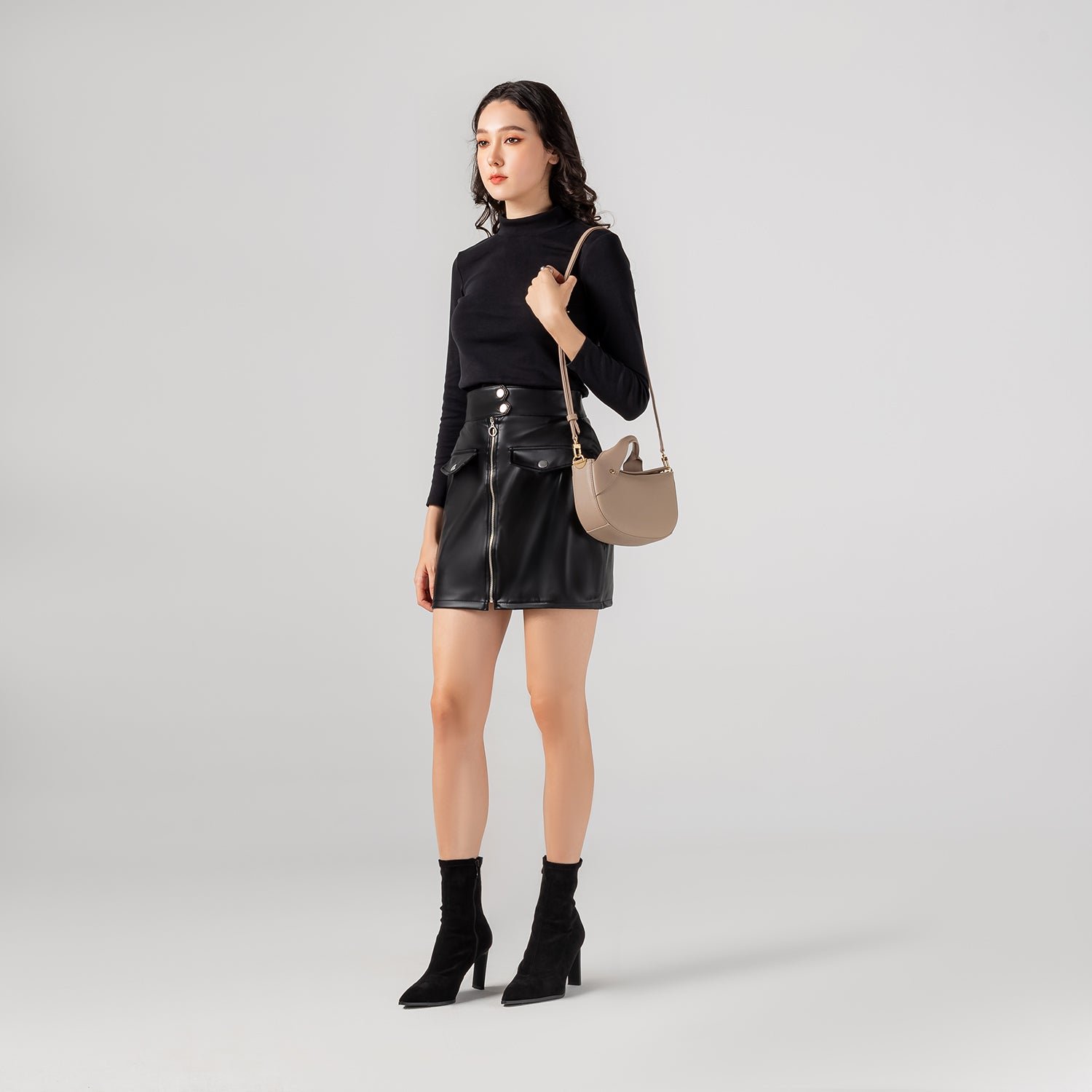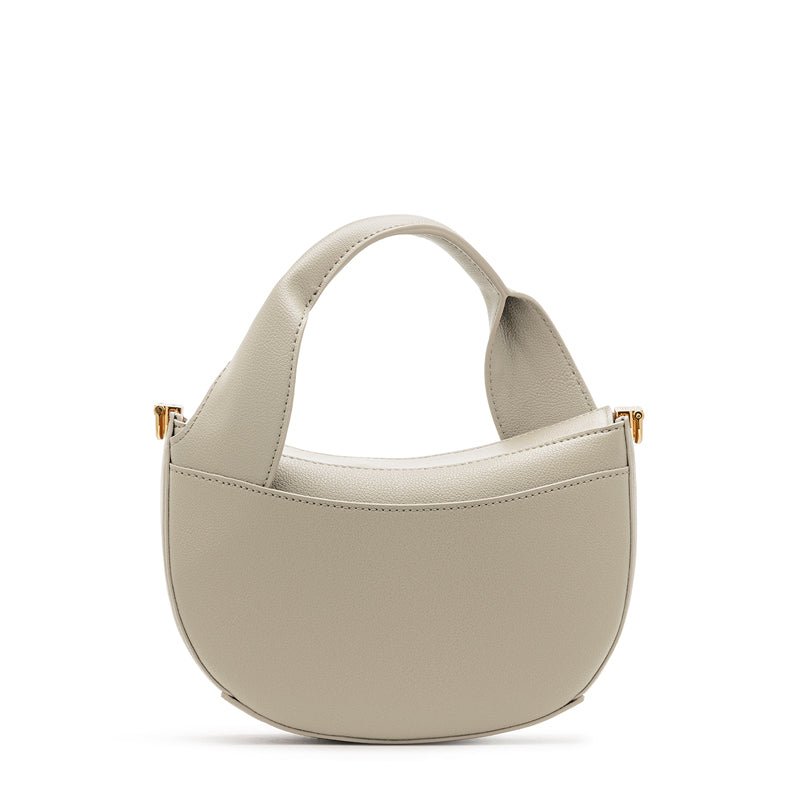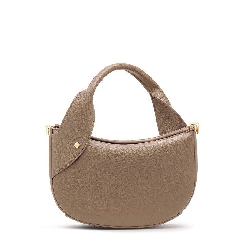 Made from lavishly premium synthetic leather and custom-made signature hardware. the Hala Moon Bag is a top-handle accessory that flawlessly fuses the element of allure with optimal function.