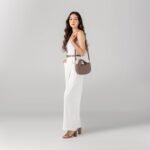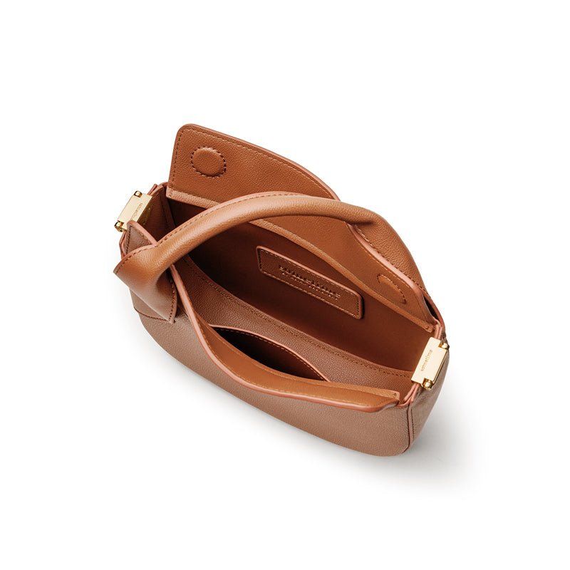 Graced with a unique draped top handle. overlapping flaps with hidden magnetic buttons open into a sizable compartment for a phone. small wallet. keys. shades. and other daily must-haves. The main compartment comes with a pocket as well to organize essentials neatly.