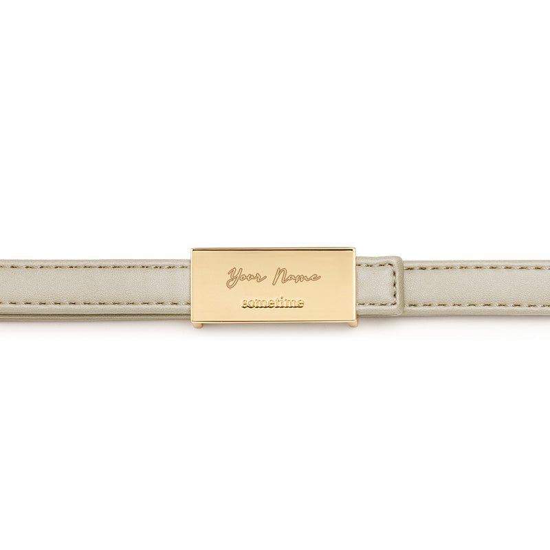 Not into holding it in your hand? The crossbody option is one move away with an adjustable and removable strap. featuring our signature buckle piece that can be personalized with your name.