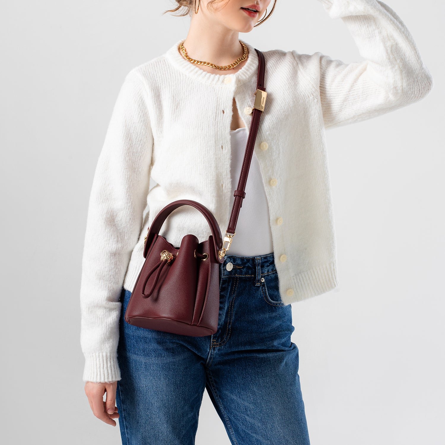 Featuring a main compartment that can fit your essentials. including a smartphone. a small purse. and other daily necessities. the Knoty Bucket comes with a luxurious golden lucky knot hardware. allowing you to adjust the opening size for easier access to your belongings.