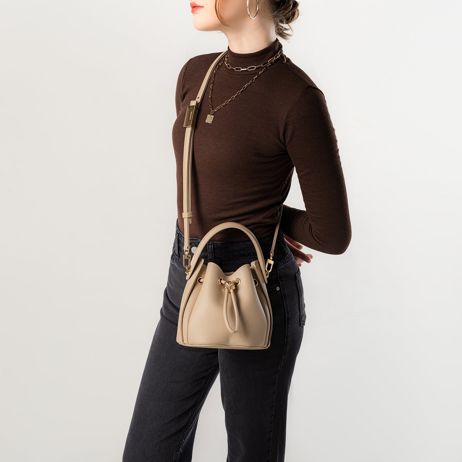 Carry it by its elegant handle or switch it to a crossbody for a more relaxed look. Ideal for date night. or a casual outing. the Knoty Bucket is both graceful and refined.
