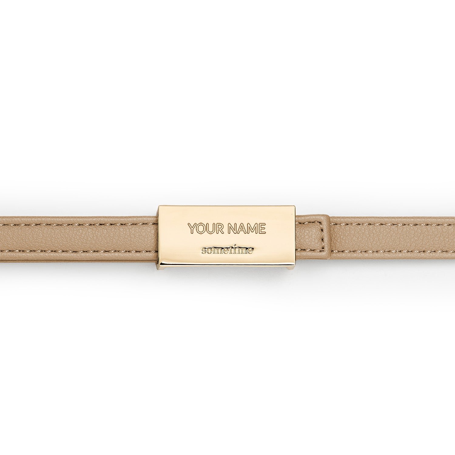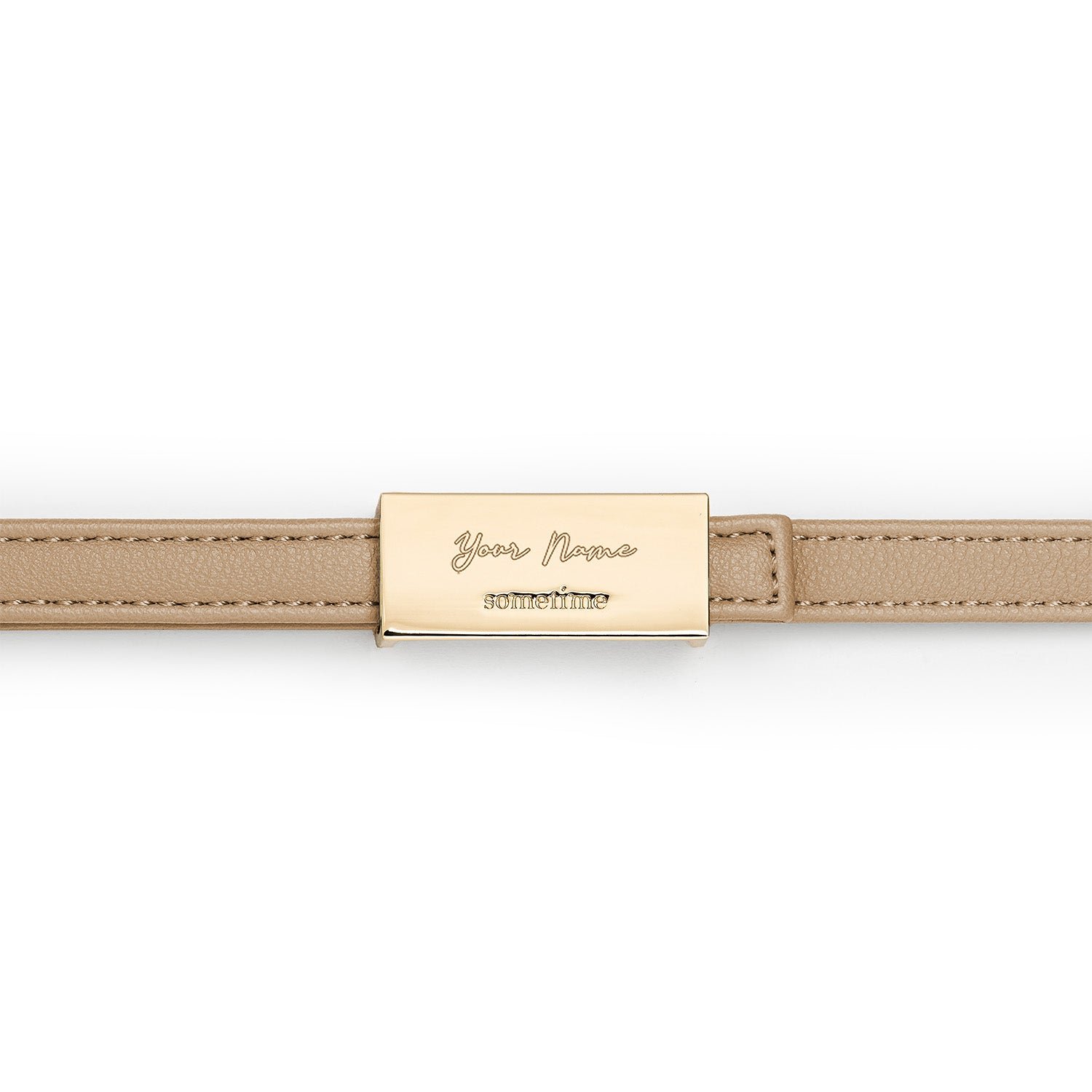 Make Knoty Mini Bucket Bag truly yours by engraving up to 10 letters on the elegant gold buckle.