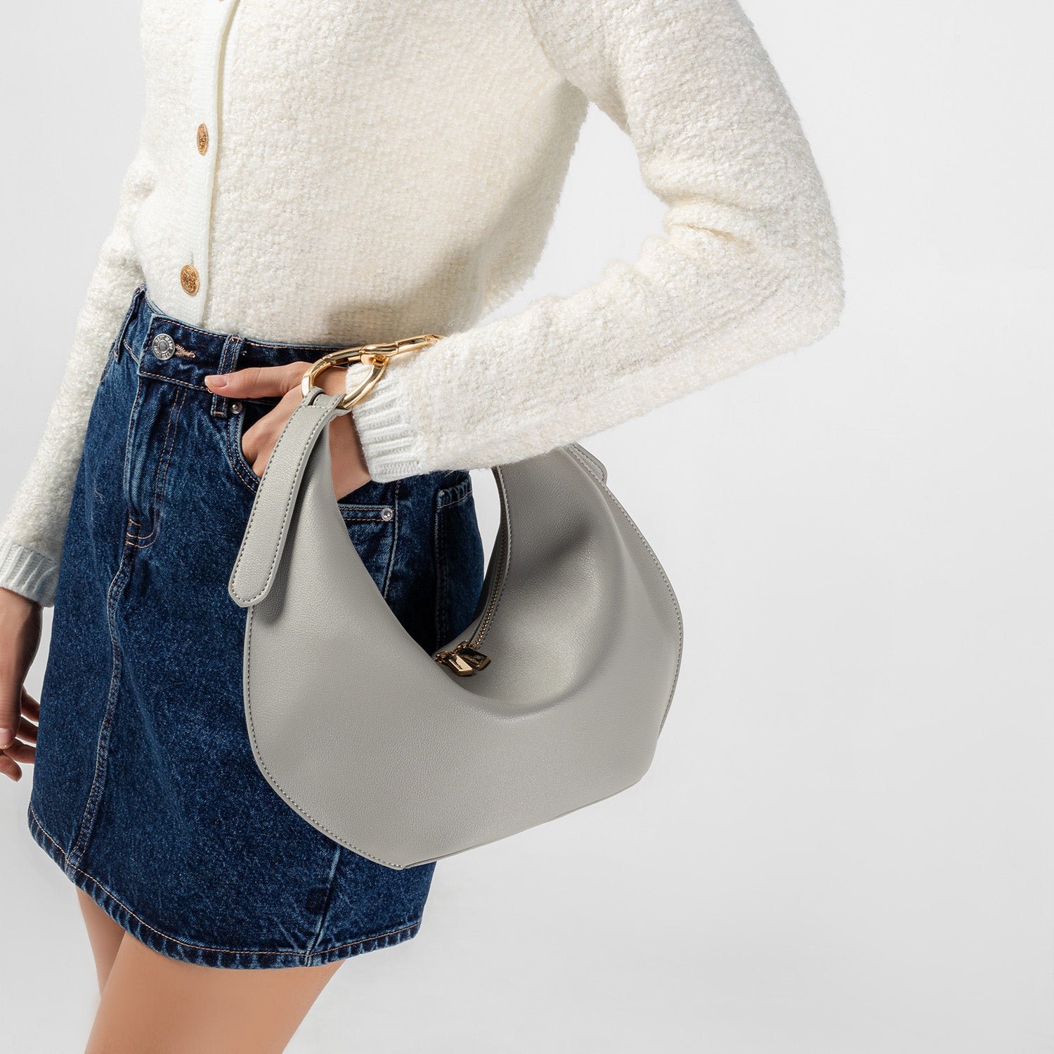 For the dazzling highlight: Kuki goes from shoulder bag to hand-held. simply by removing the handle. A flawless transition for going from AM to PM activities.