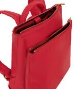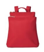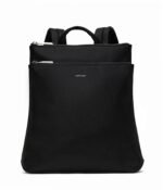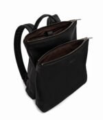 Backpack with adjustable padded straps. top handle to hand-carry. and 2 zippered compartments. Back compartment features a laptop pocket that fits a 13 laptop.