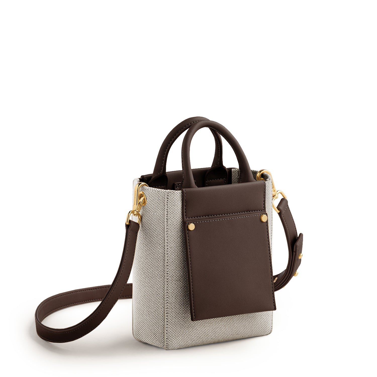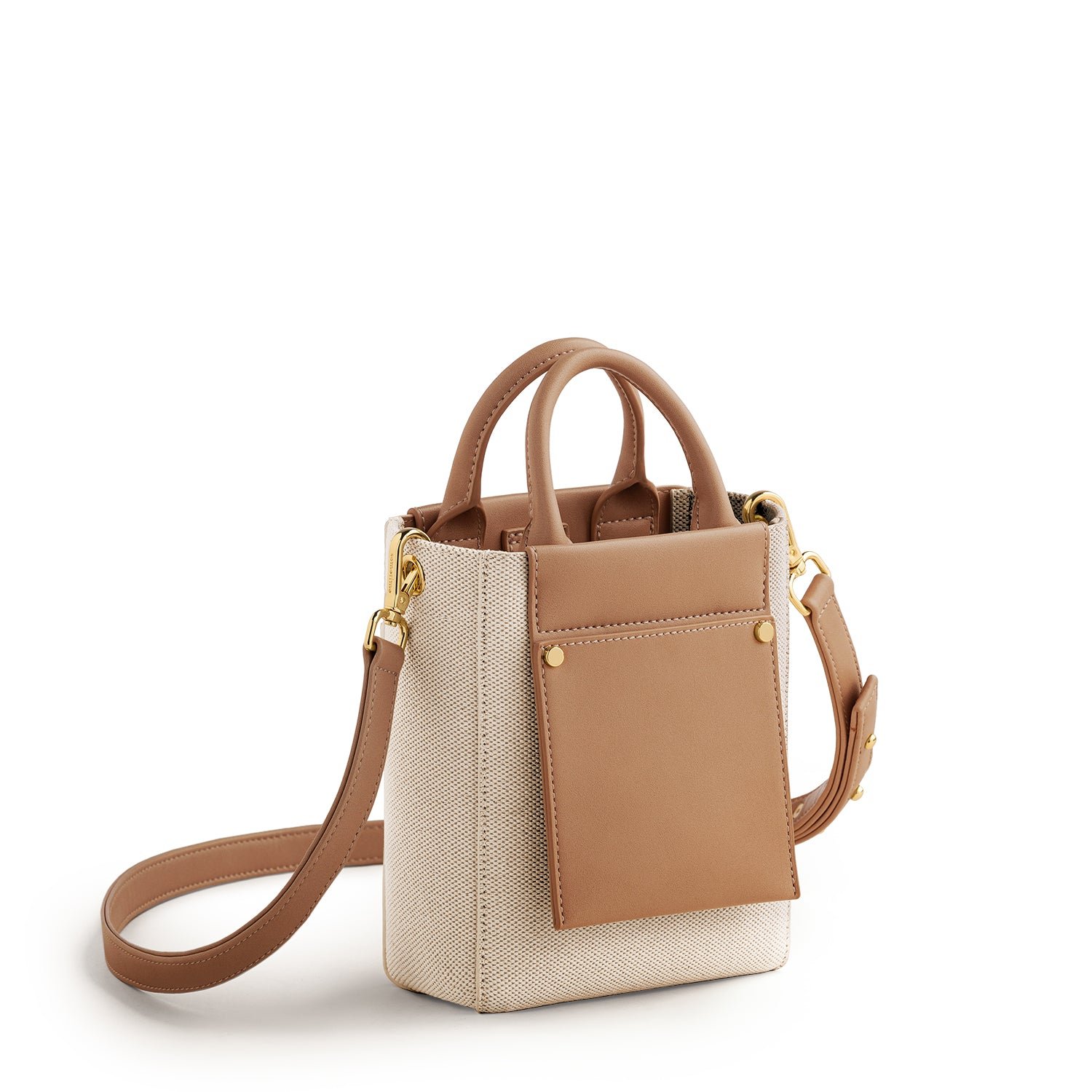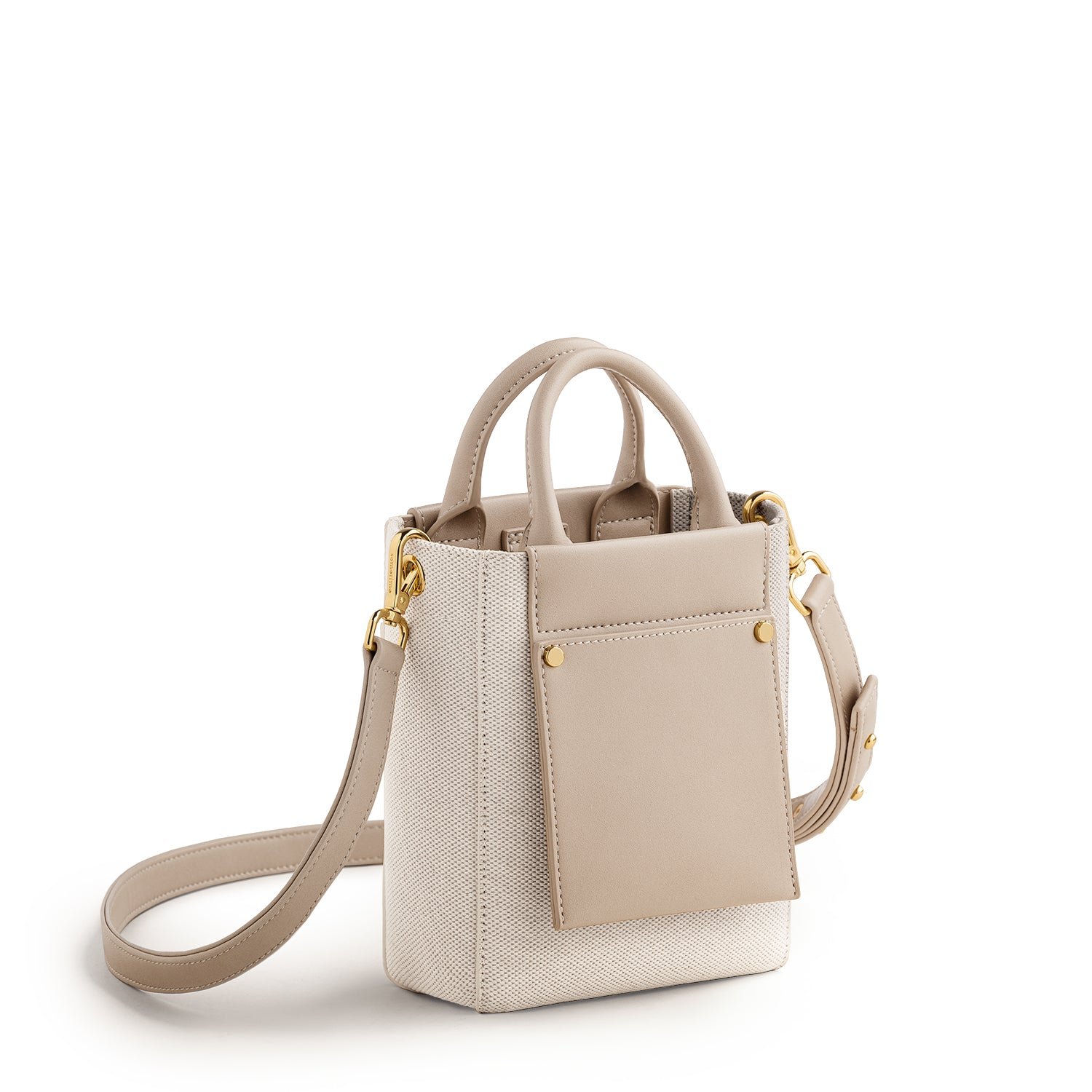 The Nicola Mini Tote is an adequately-sized mini bag designed to carry only what you need. It features two easy-access pockets to keep the small yet important items like parking tickets. hair ties and so forth. Carry it by the handle or wear it across the body for a convenient style.