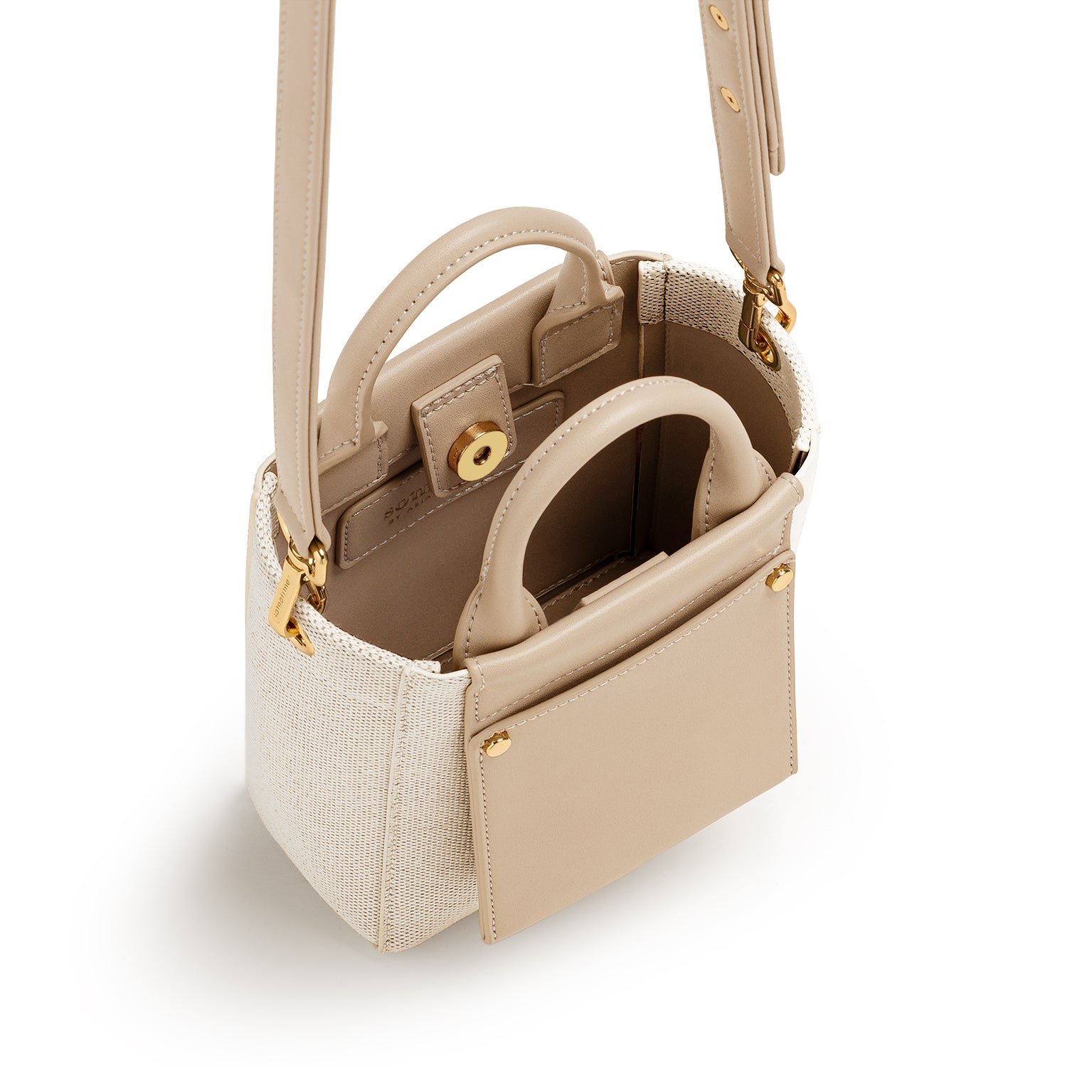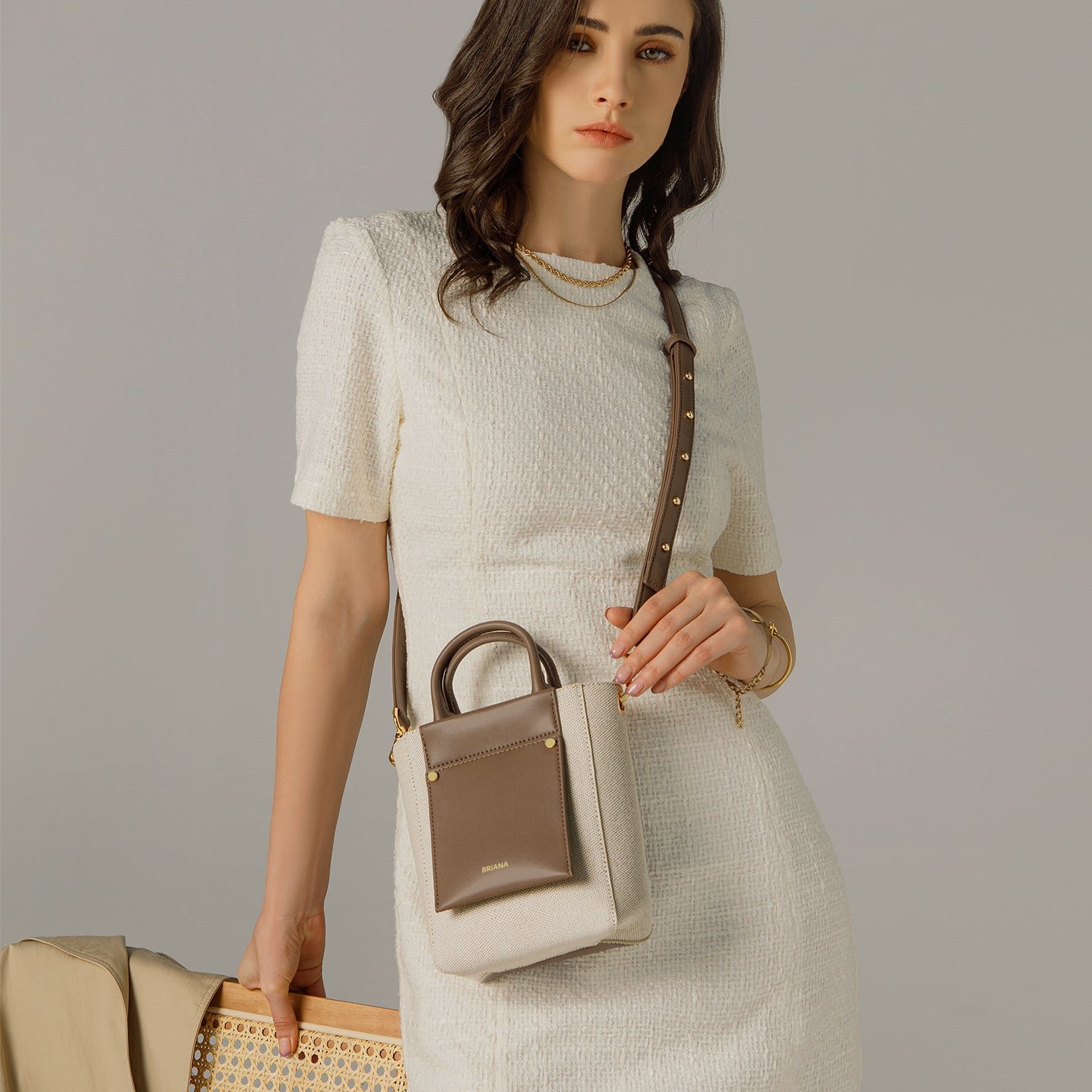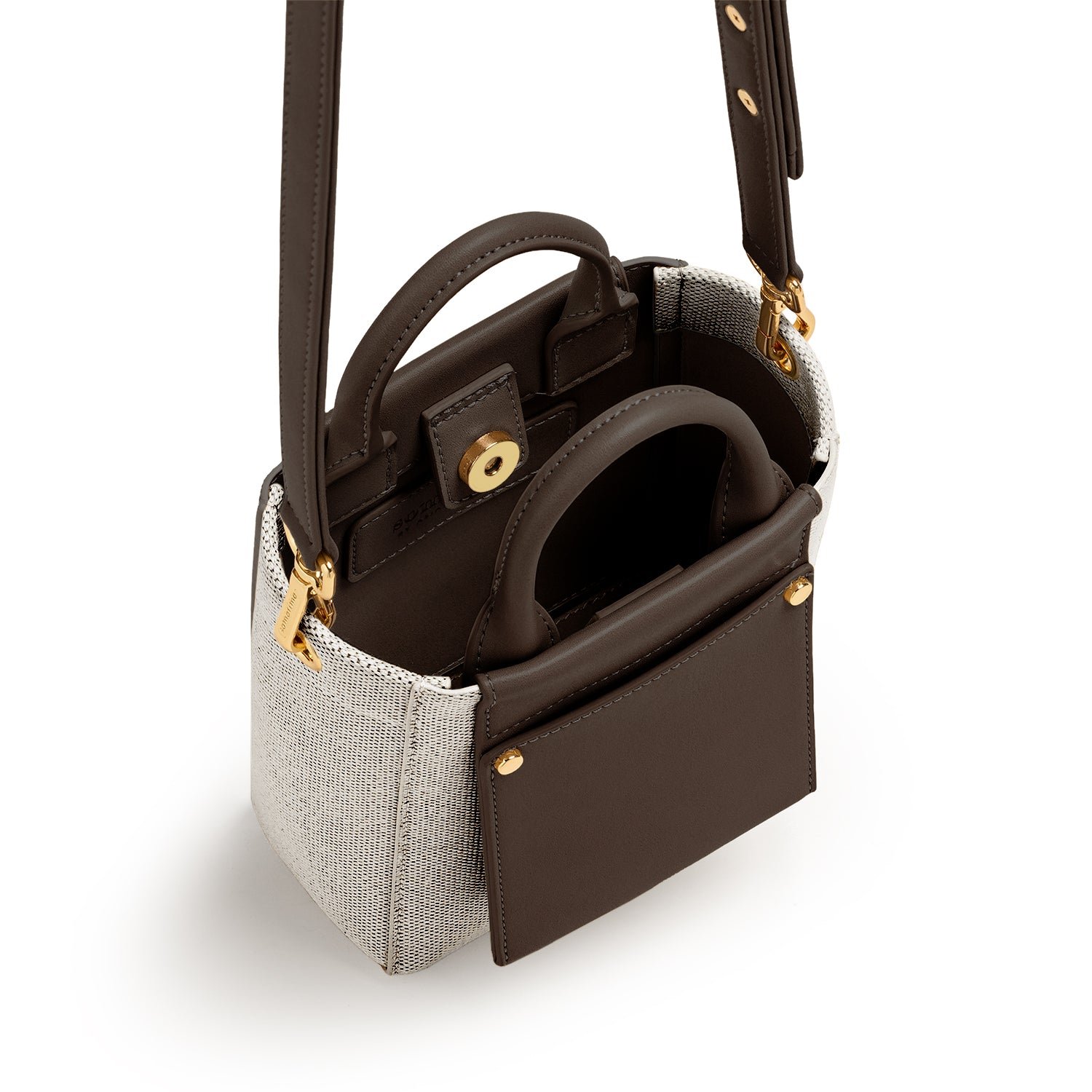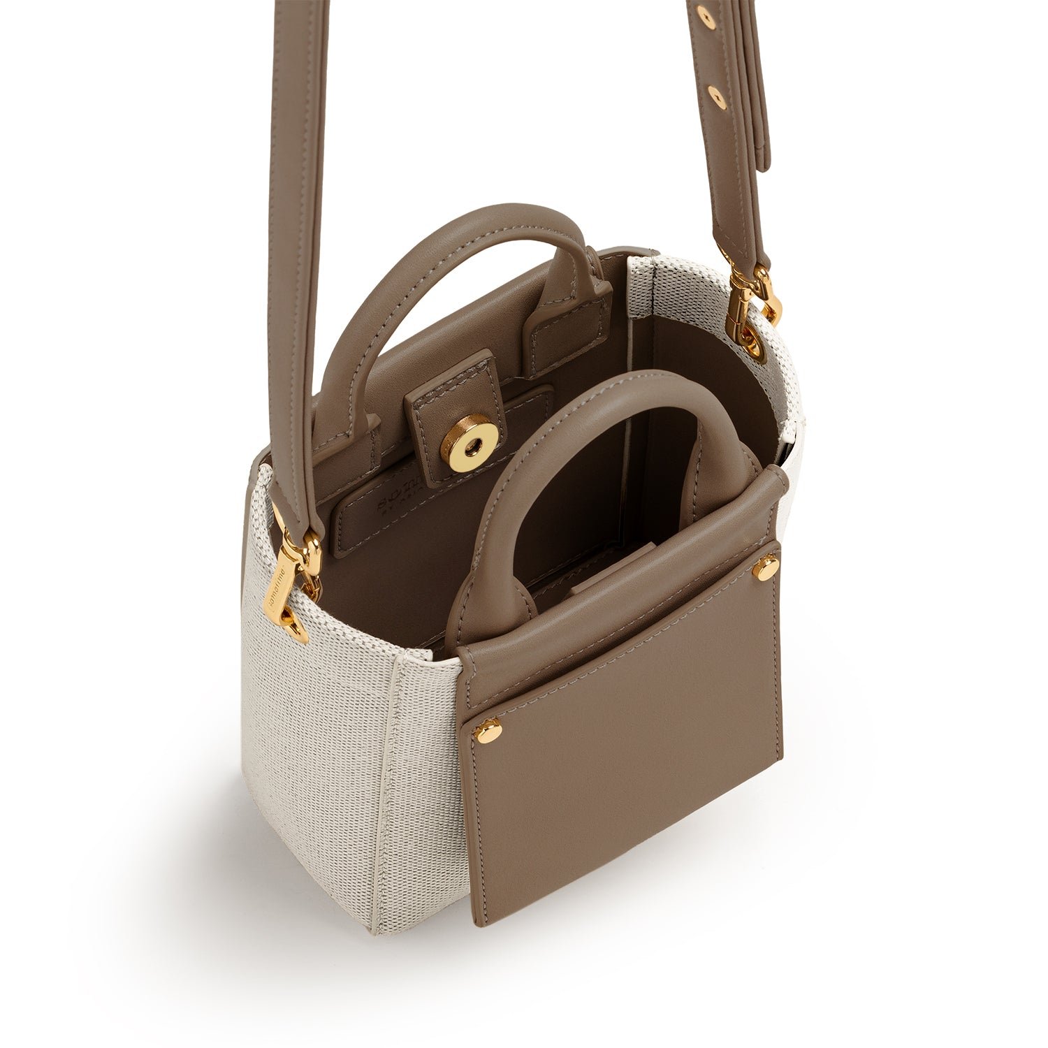 The Nicola Mini Tote is an adequately-sized mini bag designed to carry only what you need. It features two easy-access pockets to keep the small yet important items like parking tickets. hair ties and so forth. Carry it by the handle or wear it across the body for a convenient style.