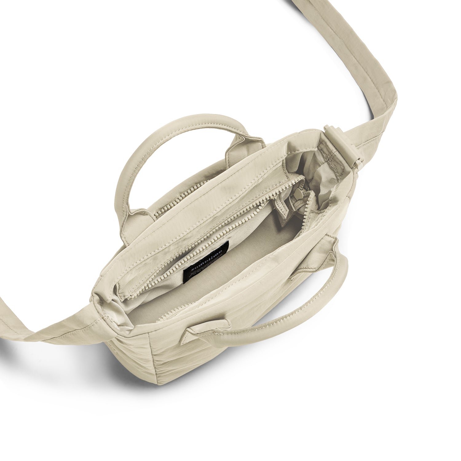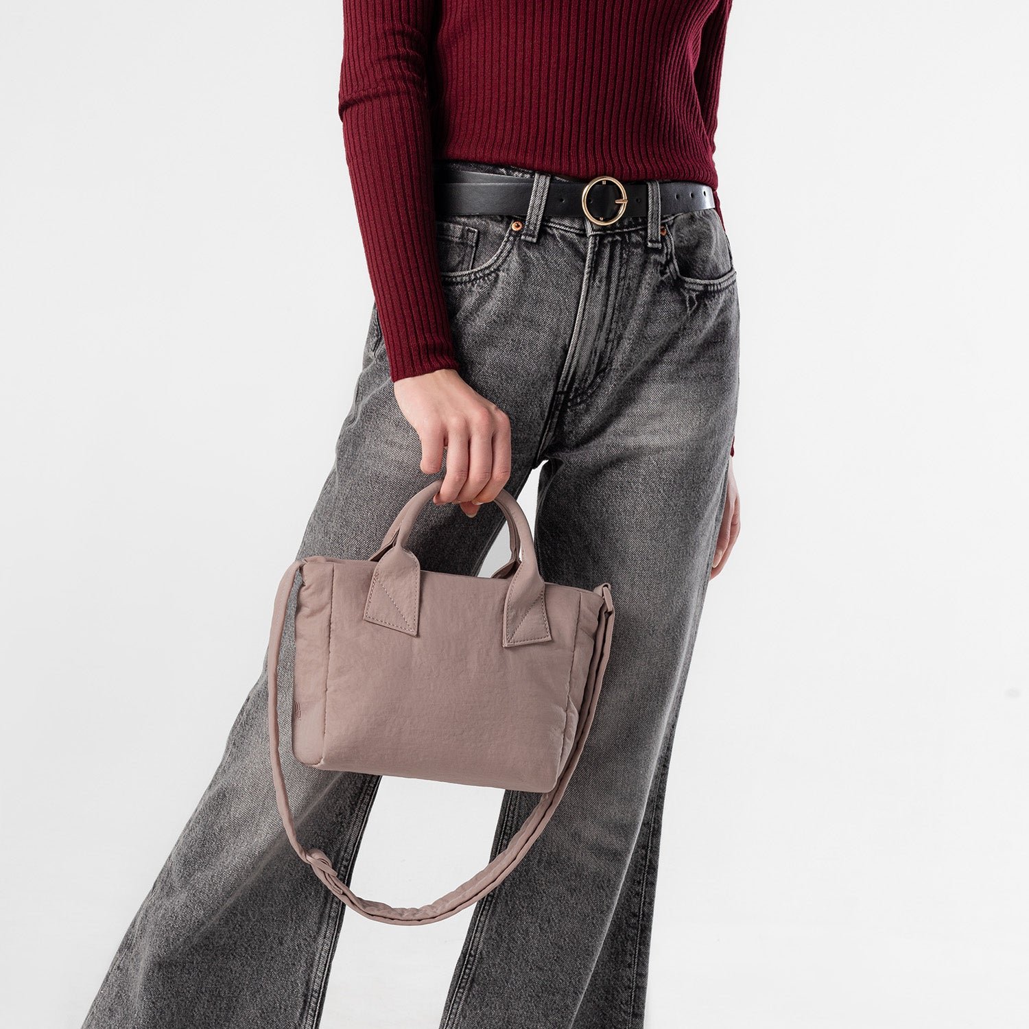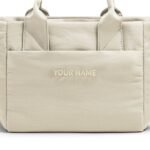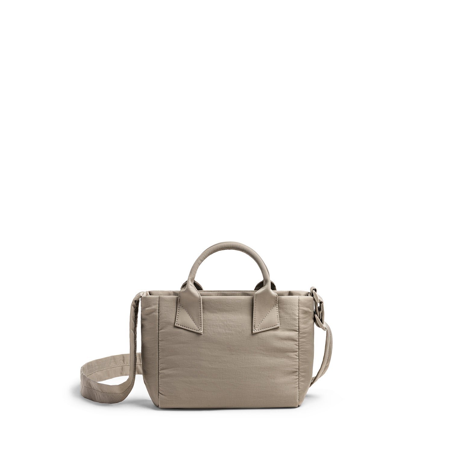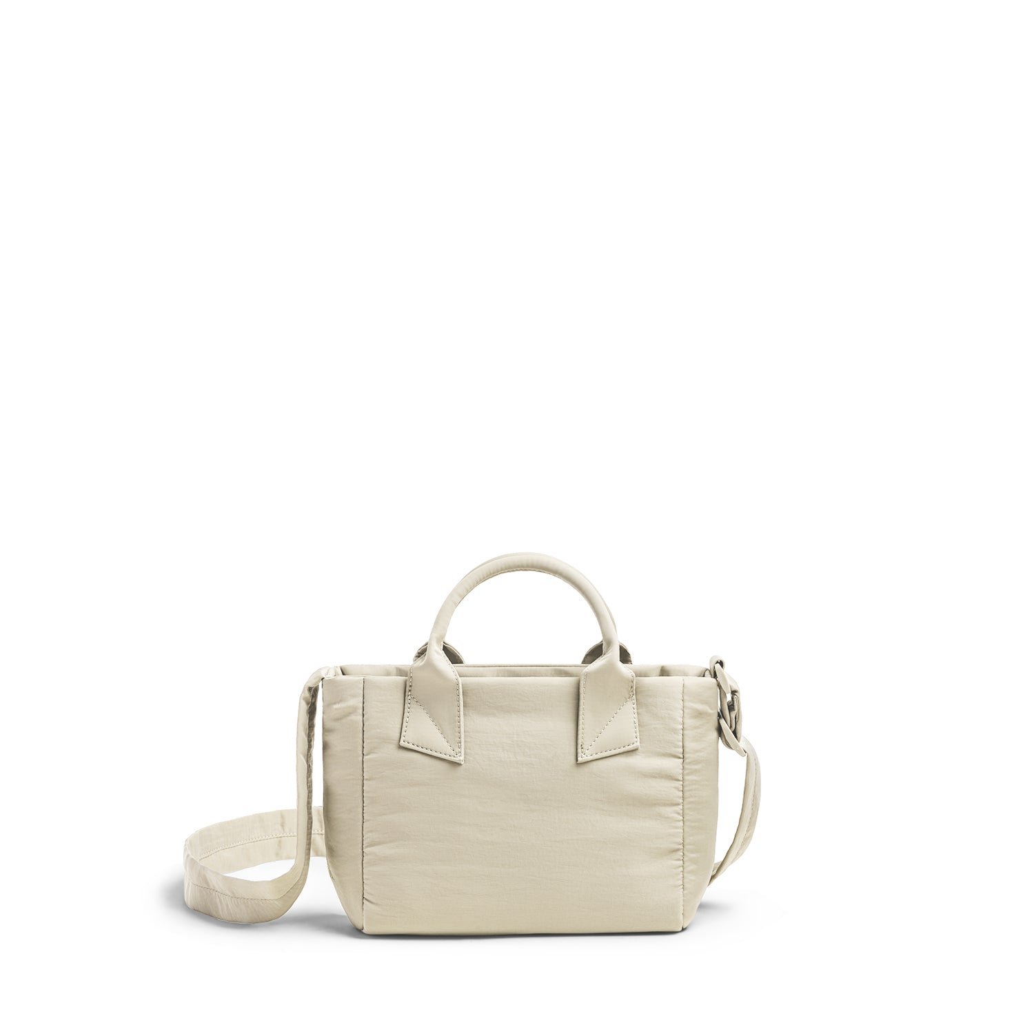 Crafted from plush padded nylon. this mini tote offers soft. pillowy comfort inspired by puffer jackets.