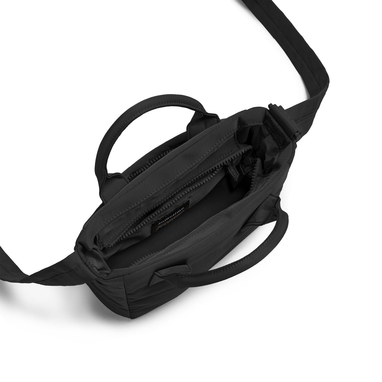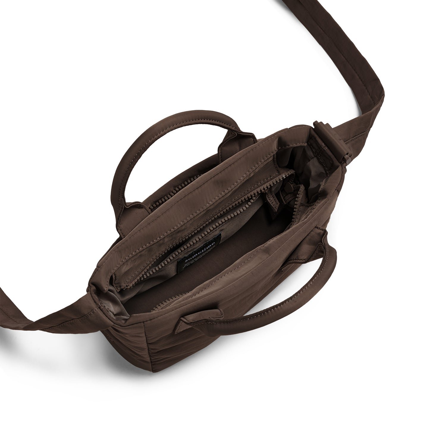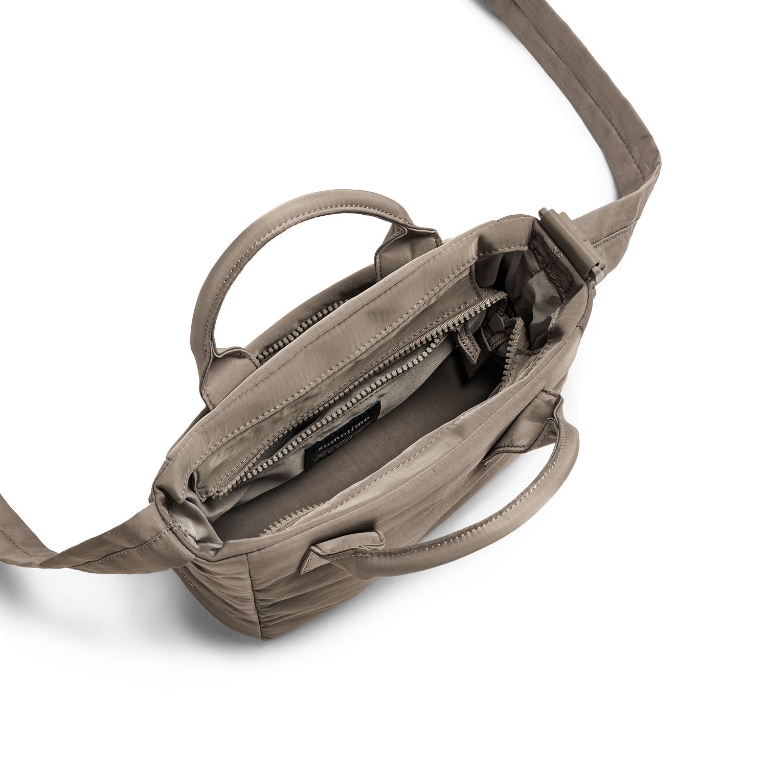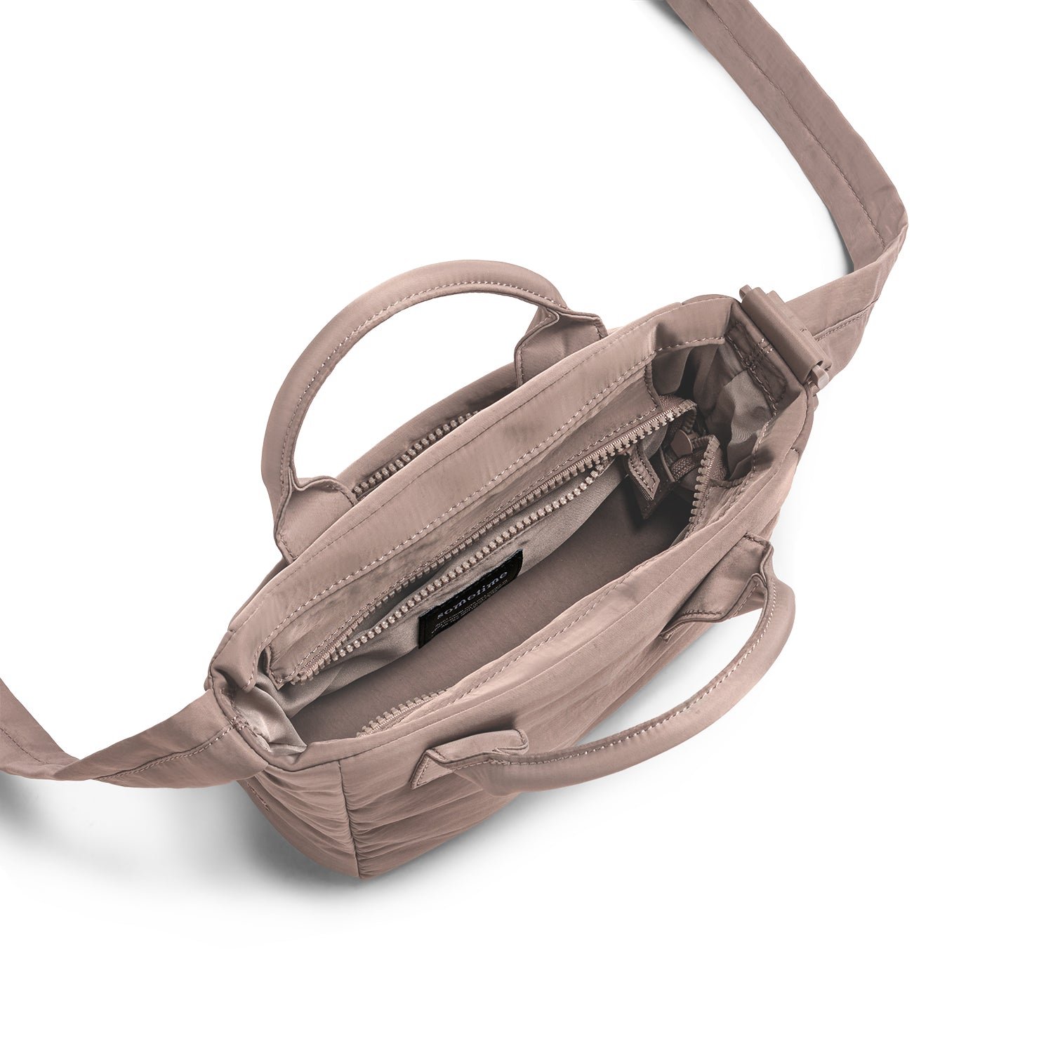 Compact yet spacious enough for essentials: slide in your favorite A5-sized book. an iPad mini. mineral water. perfume. and makeup. A zipped inner pocket keeps chargers and cables organized. while the quick-access back pocket is for your phone. keys. and parking ticket.