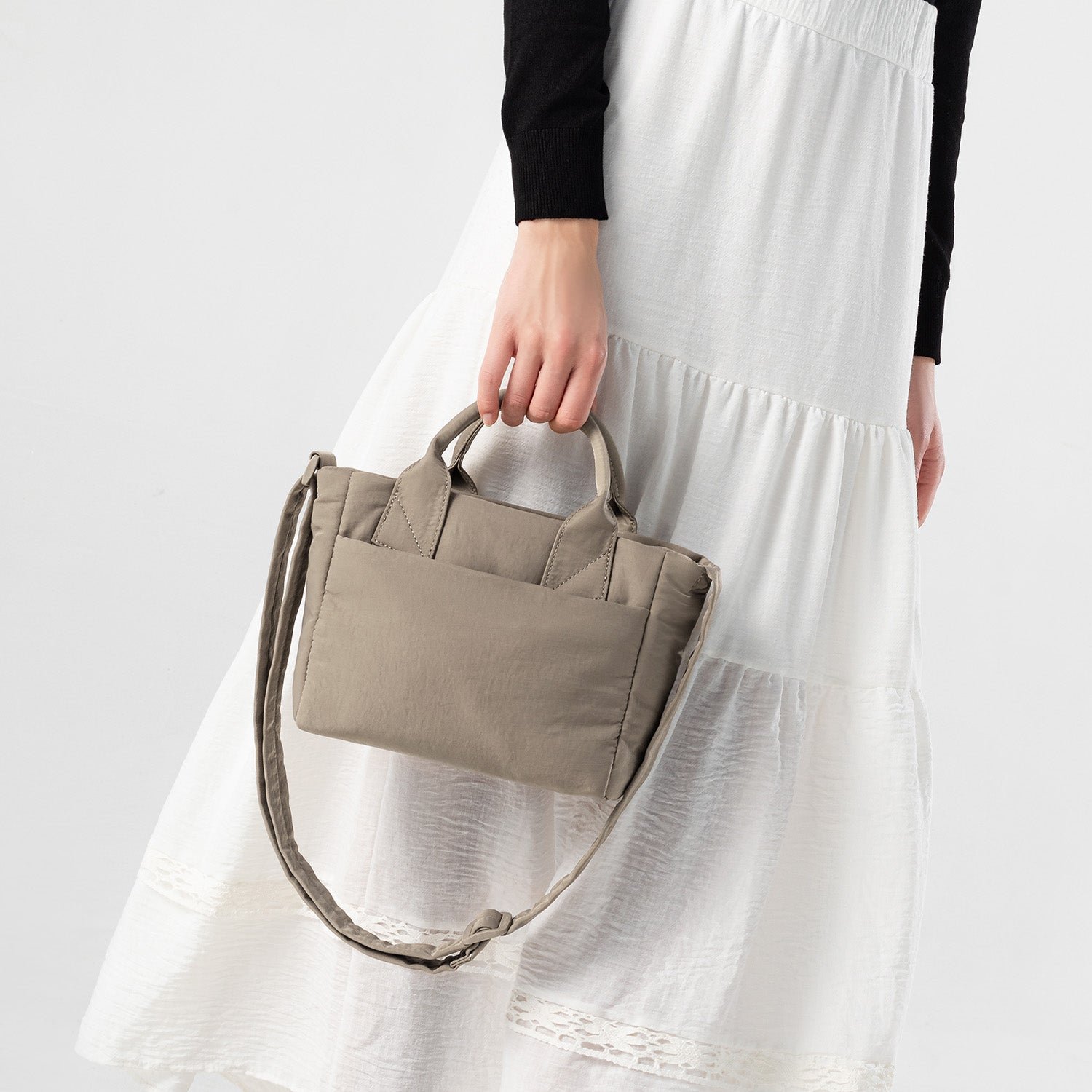 Whether commuting to work. heading to campus. or running errands. this mini tote is the go-anywhere companion. Its water-repellent fabric protects belongings from unexpected drizzles and splashes.