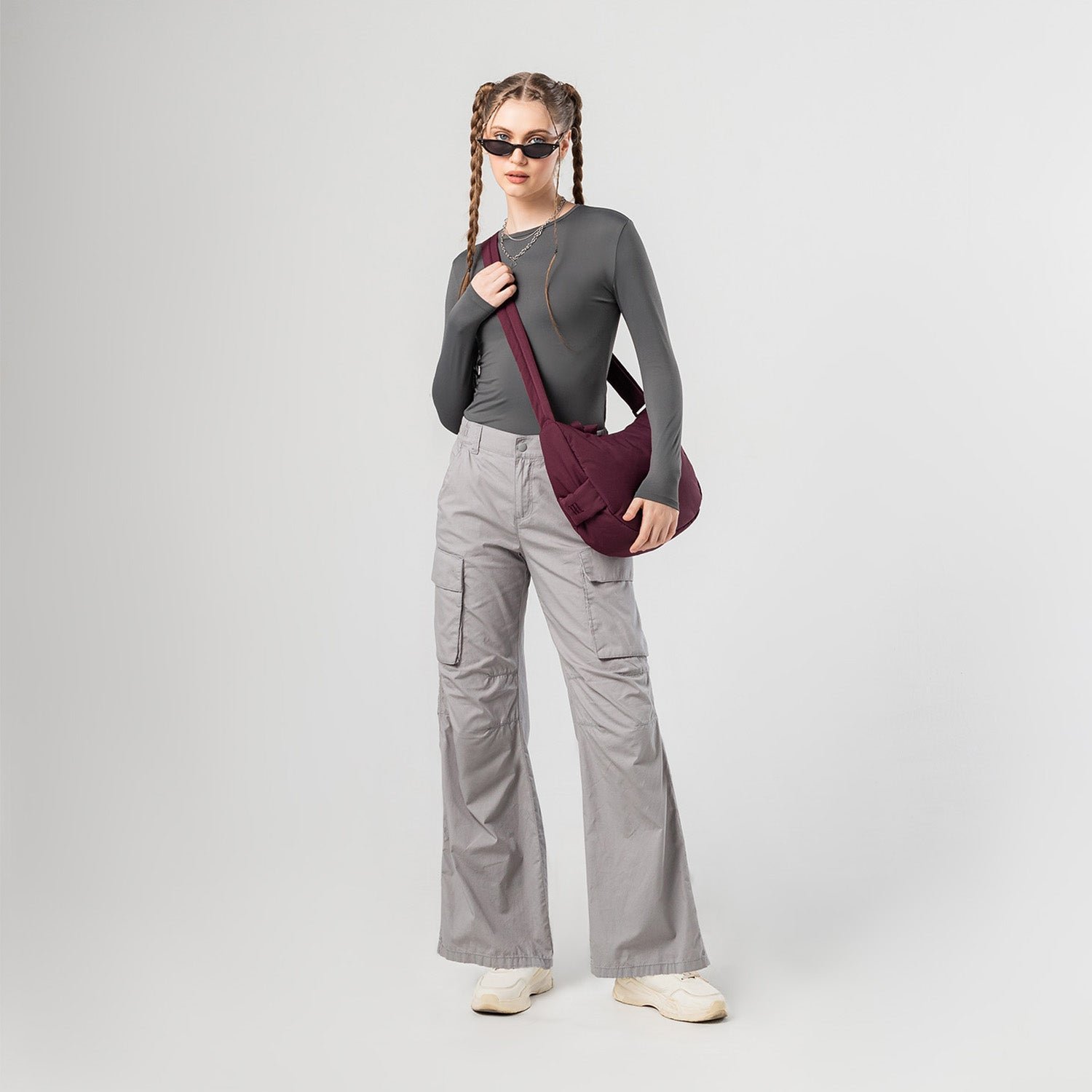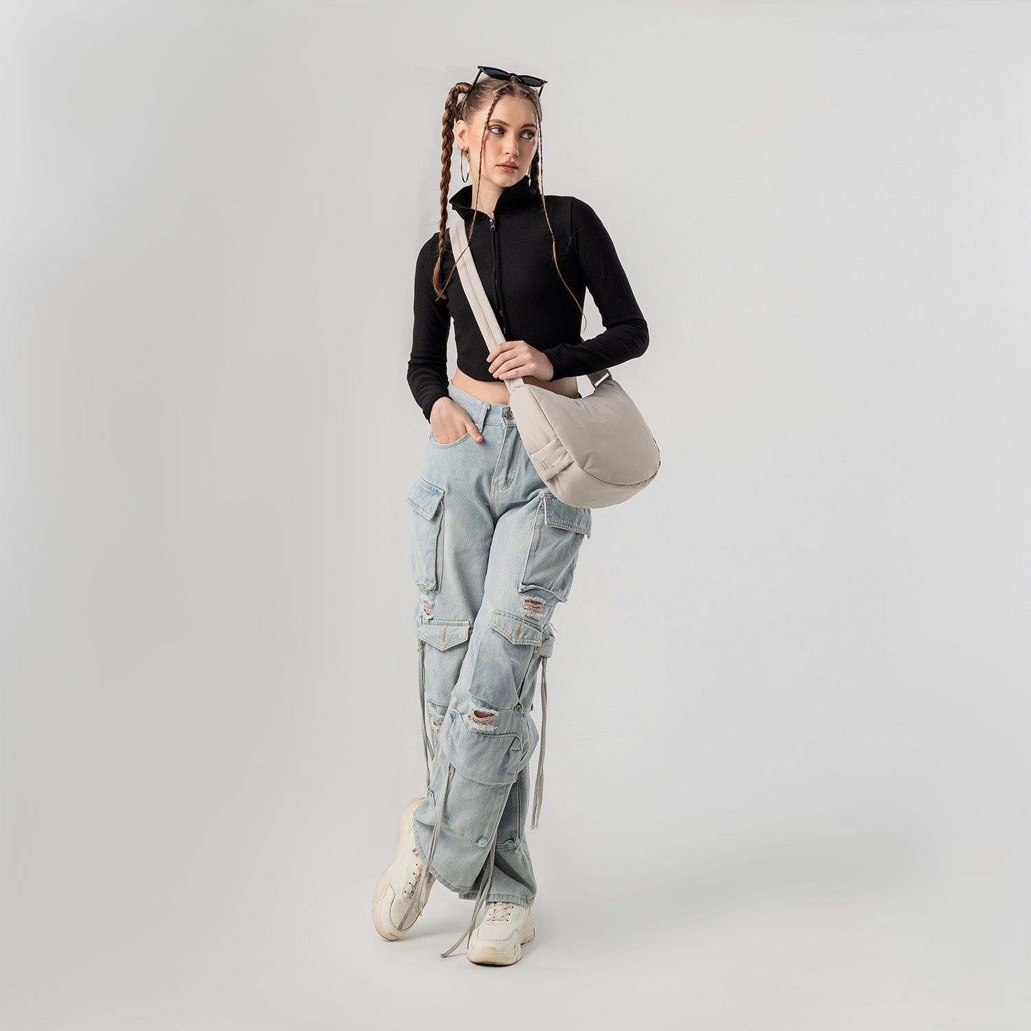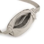 The spacious main compartment accommodates essentials like an iPad Mini. A5 notebook. long wallet. 500ml bottle. and more. An inner pocket ensures easy organization. while the exterior zipped pocket provides quick access to essentials like phone and keys. keeping them secure while you’re on the go.