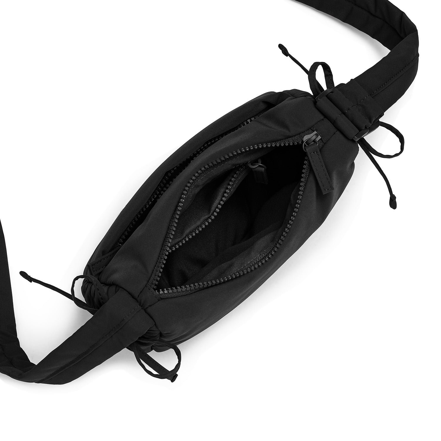 The main compartment accommodates essentials like a long wallet. power bank. a 350ml water bottle. and more. An inner pocket ensures easy organization. while the exterior zipped pocket provides quick access to essentials like keys and phone. keeping them secure while on the go.
