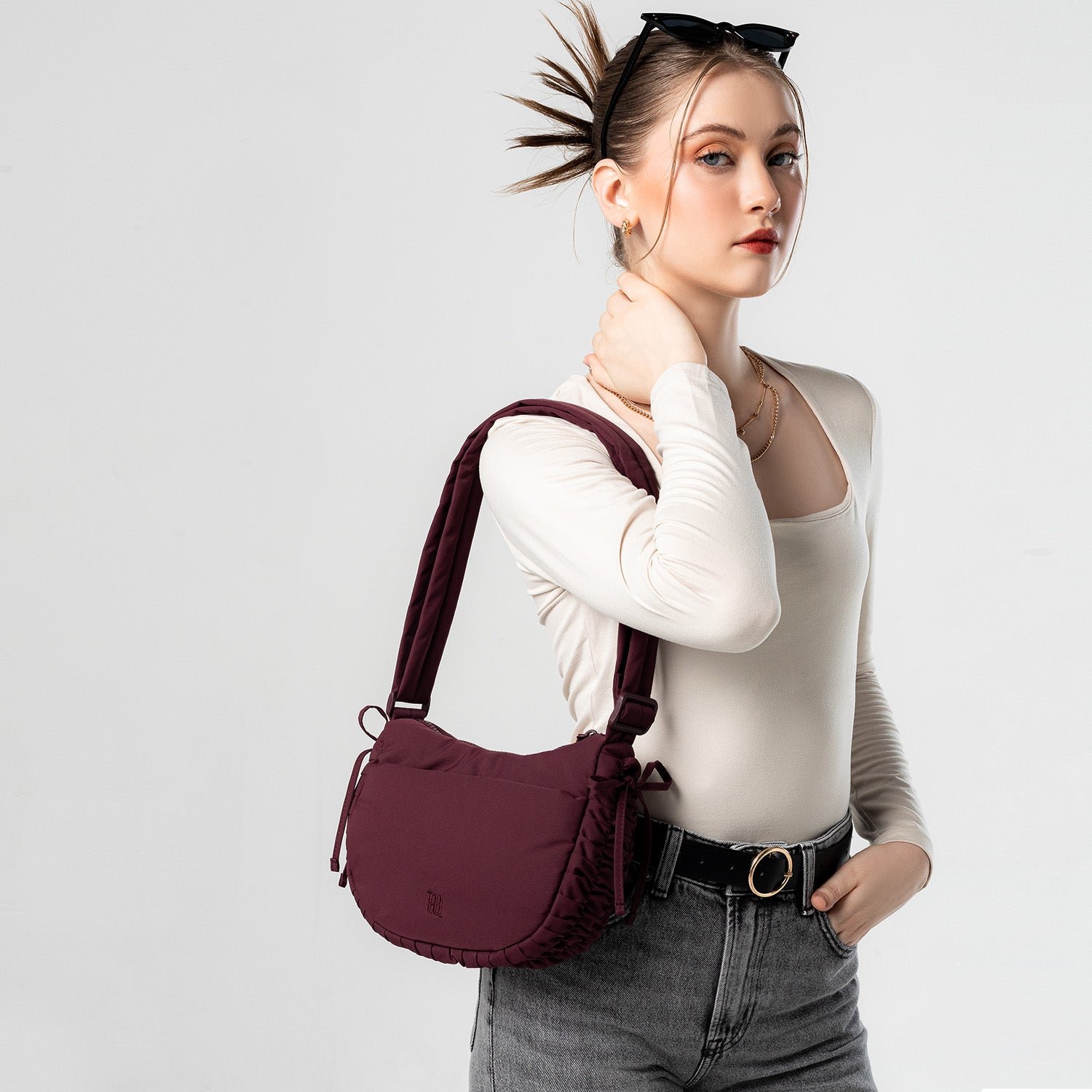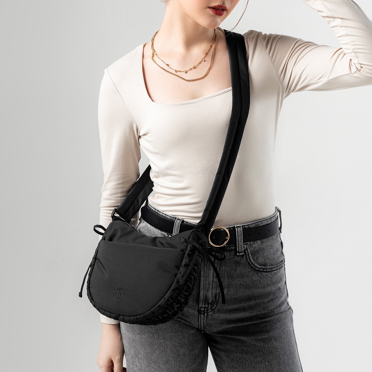 Inspired by the iconic Fuffa collection. the Soffa Mini Coquette Bag reimagines our signature style with a focus on effortless simplicity. Crafted from soft. padded nylon. this lightweight bag boasts exceptional durability and a refined feel. Adding a modern twist. we’ve redesigned the signature scrunchy strap—now elegantly placed along the sides. ensuring this standout detail remains visible at all times.