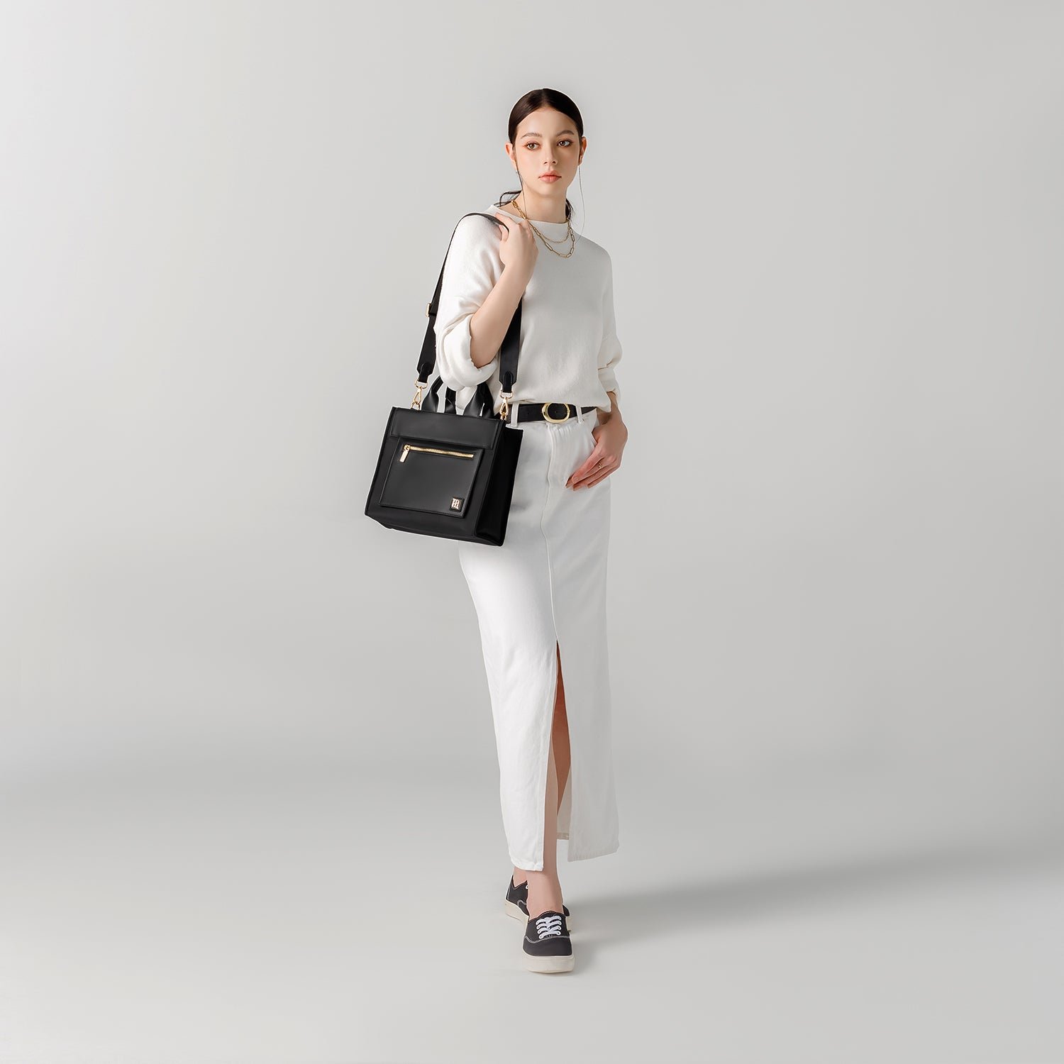 In Velia M’s capacious interior. comfortably carry more than just daily essentials like a book. water bottle. or even an iPad. Organize like a dream with a zipped pocket and an open compartment on each side to slip in keys. a phone. a cardholder. and other precious little items.