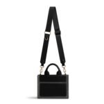 It’s mini yet mighty convenient with two modes of wearing; buttery smooth synthetic leather top handles and a grosgrain crossbody strap to go hands-free.